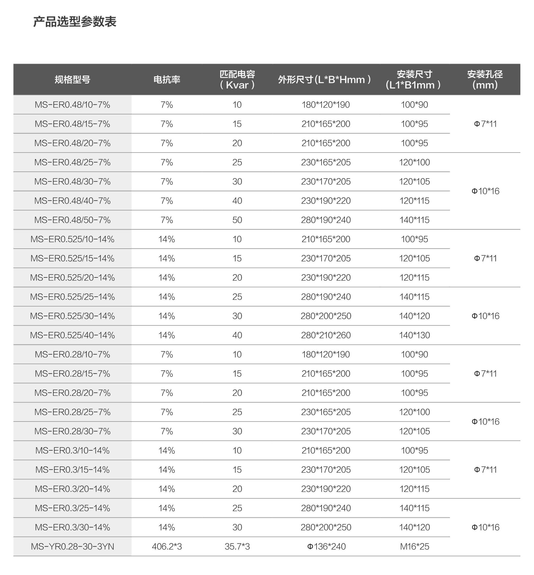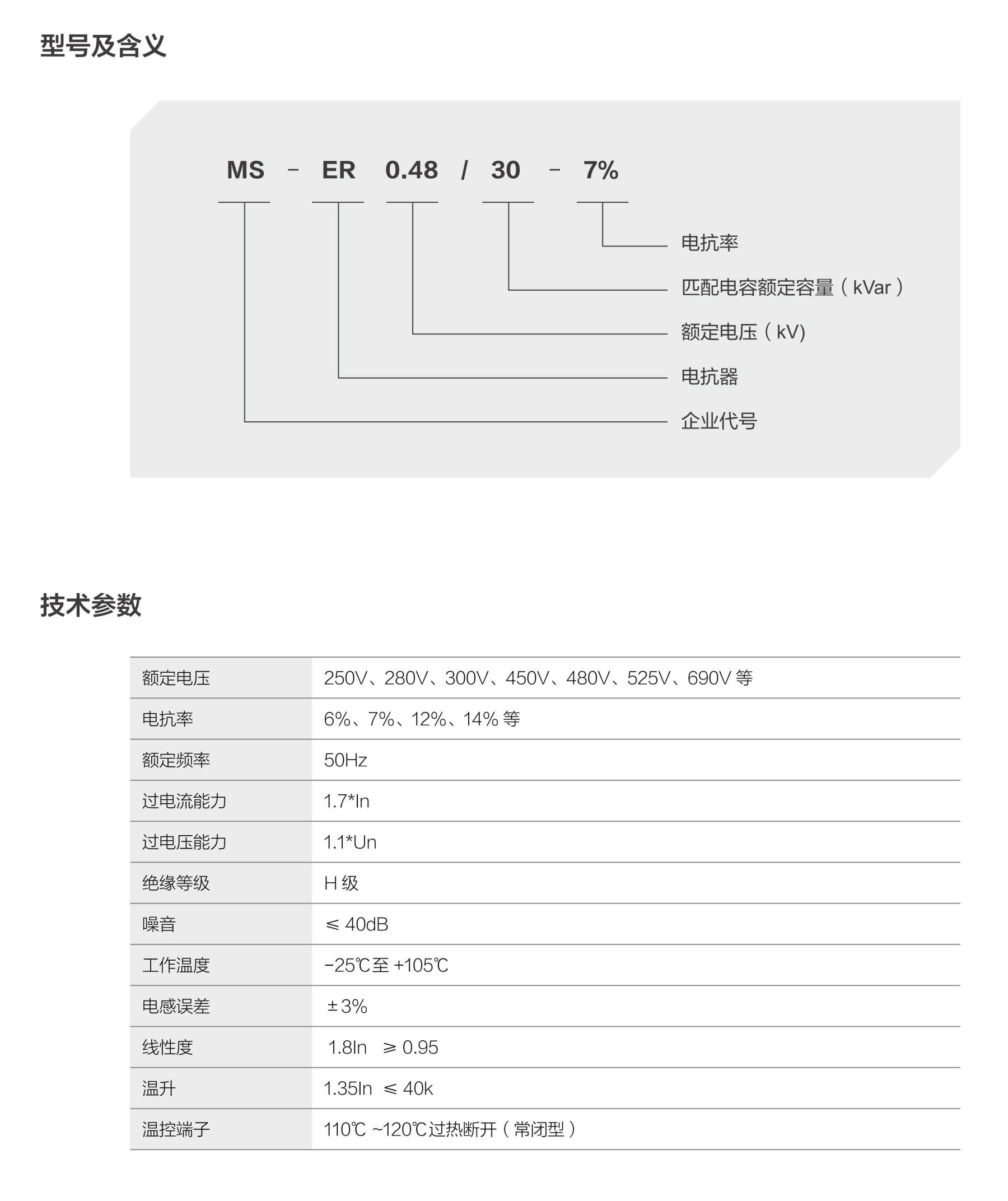 MS-ER 系列抗諧波電抗器用于低壓系統(tǒng)中,與并聯(lián)電容器組成串聯(lián)回路,可以有效降低無功電流,抑制流過電容器組的諧波電流和限制合閘涌流,保護電容器安全可靠運行,起到節(jié)約電能作用,有效改善電能質(zhì)量從而使電力系統(tǒng)安全運行。