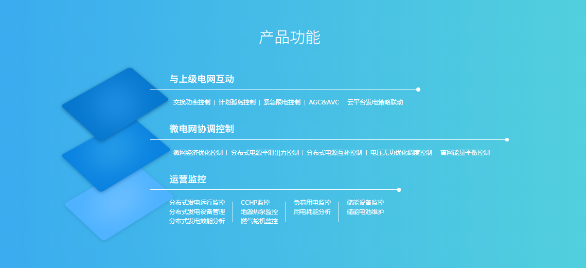 微電網(wǎng)智能控制系統(tǒng)是邁爾斯自主創(chuàng)新、獨(dú)立開(kāi)發(fā)的微網(wǎng)智能管控系統(tǒng),可實(shí)現(xiàn)微電網(wǎng)系統(tǒng)數(shù)據(jù)采集、監(jiān)控、并離網(wǎng)切換、離網(wǎng)能量平衡控制、負(fù)荷分級(jí)自動(dòng)控制、與上級(jí)電網(wǎng)的信息交換等功能,同時(shí)可對(duì)微網(wǎng)內(nèi)部光伏、風(fēng)電、CCHP、地源熱泵等分布式能源進(jìn)行協(xié)調(diào)控制和管理,達(dá)到微網(wǎng)項(xiàng)目安全可靠、經(jīng)濟(jì)技術(shù)全局最優(yōu)運(yùn)行。